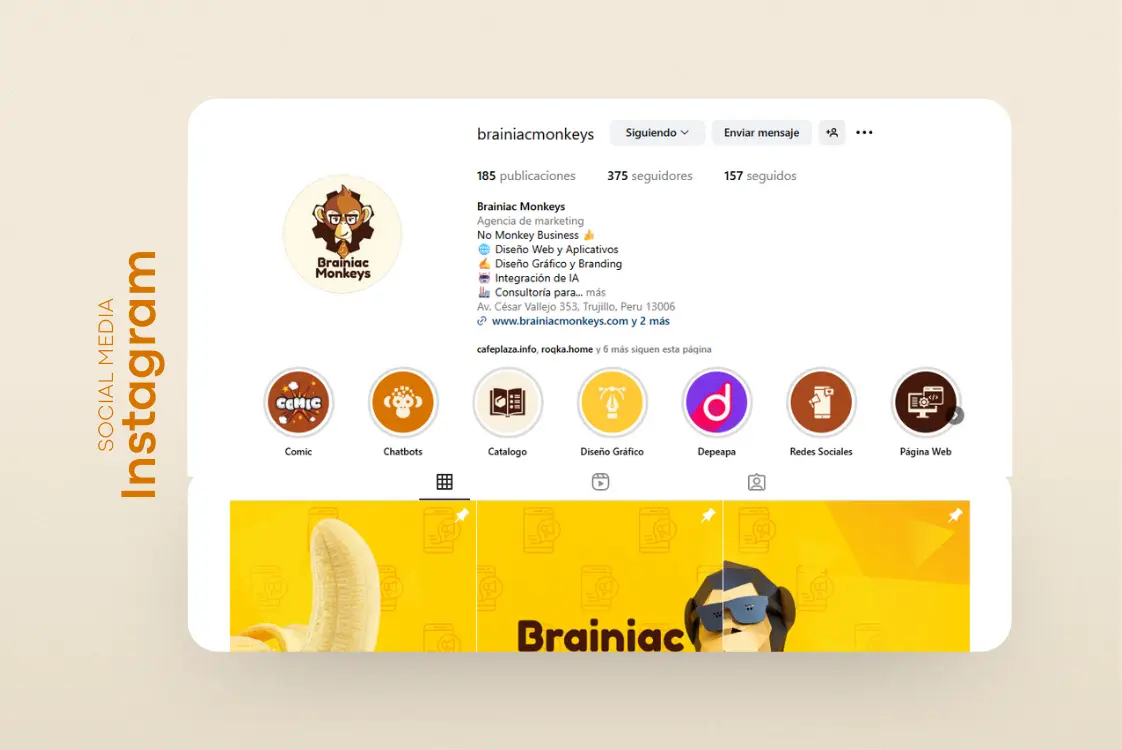 Portafolio Todos Sitio Web Redes Sociales Diseño Gráfico Media Publicidad Inmobiliaria La Laguna Sitio Web Completo. Bordhe Sitio Web Informativo. Clic al Corazón Sitio Web Informativo. Clic al Corazón | Eventos Sitio Web Landing Page. Claudia Grillo Presentadora Sitio Web Portafolio Magudent Sitio Web Mixto Tienduqi Sitio Web Tienda Online La Llama Burger Sitio Web Informativo Agromocan SAC Sitio Web Informativo Musas Bistró Café Facebook | Instagram Brainiac Monkeys Facebook | Instagram Inmobiliaria La Laguna Facebook | Instagram Roqka Home Facebook | Instagram Fit With Julia Facebook | Instagram Magudent Facebook | Instagram La Granja Chicken Facebook DC Segurity & Construction Facebook Nutrición con "K" Facebook | Google My Business Jueguiverso Diseño de Imagotipo Pinkdolphin Diseño de Isologo La Granja Chicken Diseño de Logo Transtur Imperio Diseño de Logo Musas Bistro Café Diseño de Carta Mango Mania Diseño de Logo y Stickers Musas Bistro Café Manual de Identidad de Marca Clic al Corazón Manual de Identidad de Marca Genesis Mind, Dark Clouds The Brainiac Monkeys ( Instrumental) The Jungle Mix RAP The Brainiac Monkeys ( Instrumental) Video Promocional Ventas de lotes en Chepén Brainiac Monkeys Merchandising Inmobiliaria La Laguna Merchandising